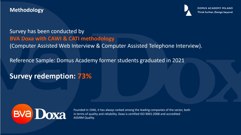 2021年のドムスアカデミー卒業生対象のアンケート結果で、卒業後1年以内の就職率が96%と発表されました!